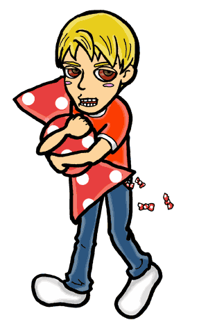 ★道草少年団のお子ちゃま ★末っ子らしく甘え上手でゲームが大好き ★ちょっと(かなり)鈍感な17歳 ★特技は「ヅラボム」 Mが開発したヅラを何重にもかぶっており、 敵に向けて投げると 爆発する ★キャプのゲーム仲間で、いじめられている事に気付いていない